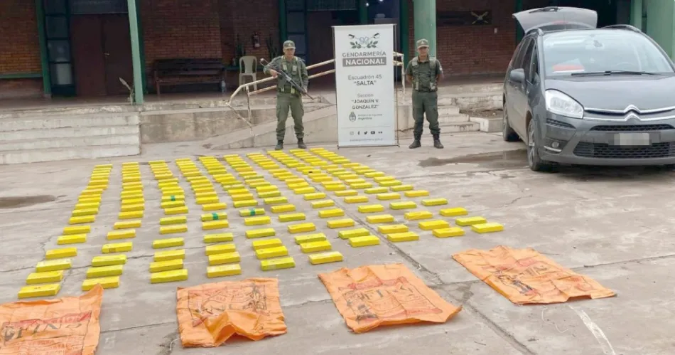 Efectivos de Gendarmería de la Sección "Joaquín V. González" del Escuadrón 45 "Salta" mientras se encontraban emplazados sobre el kilómetro 18 de la Ruta Provincial N° 30, detuvieron la marcha de un vehículo Citroën Grand C4 Picasso ocupado por un hombre, el cual circulaba por las localidades salteñas de Aguaray y Joaquín V. González.