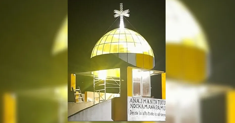 Un grupo de devotos originarios de Ceres, provincia de Santa Fe, llevan adelante trabajos de iluminación en la popular cúpula del Templete del Señor de los Milagros de Mailín.