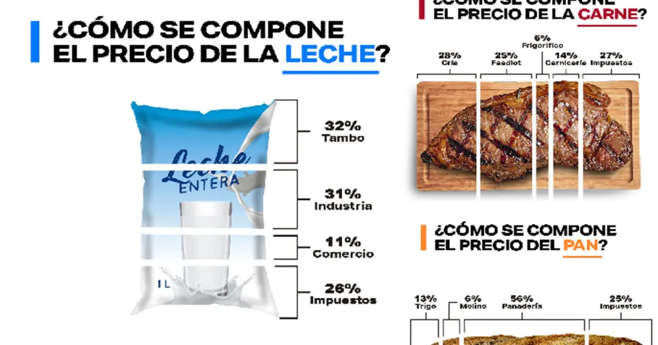 En el caso de la carne, el precio está compuesto por un 60% de costos. En la leche 67% son costos, 26% son impuestos y solo un 7% son ganancias.