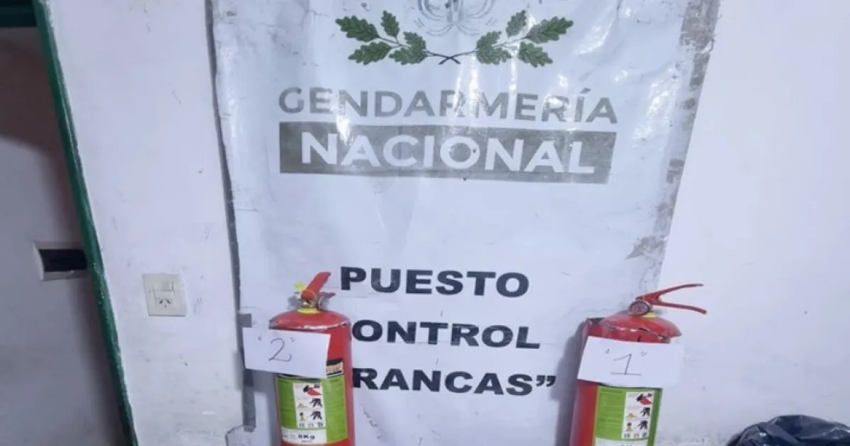 Al revisar el equipaje de los pasajeros, los gendarmes advirtieron la presencia de dos extintores cuyo peso resultaba excesivo y cuyas estructuras presentaban anomalías evidentes. Esta situación motivó una inspección más minuciosa con el apoyo de un can antinarcóticos, que marcó los objetos como sospechosos.