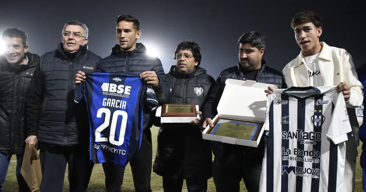 En el entretiempo del partido entre Sarmiento de La Banda y Sarmiento de Resistencia, por el Torneo Federal A, la dirigencia del club santiagueño realizó un emotivo homenaje a tres futbolistas surgidos de su cantera que hoy brillan en distintos rincones del fútbol profesional.