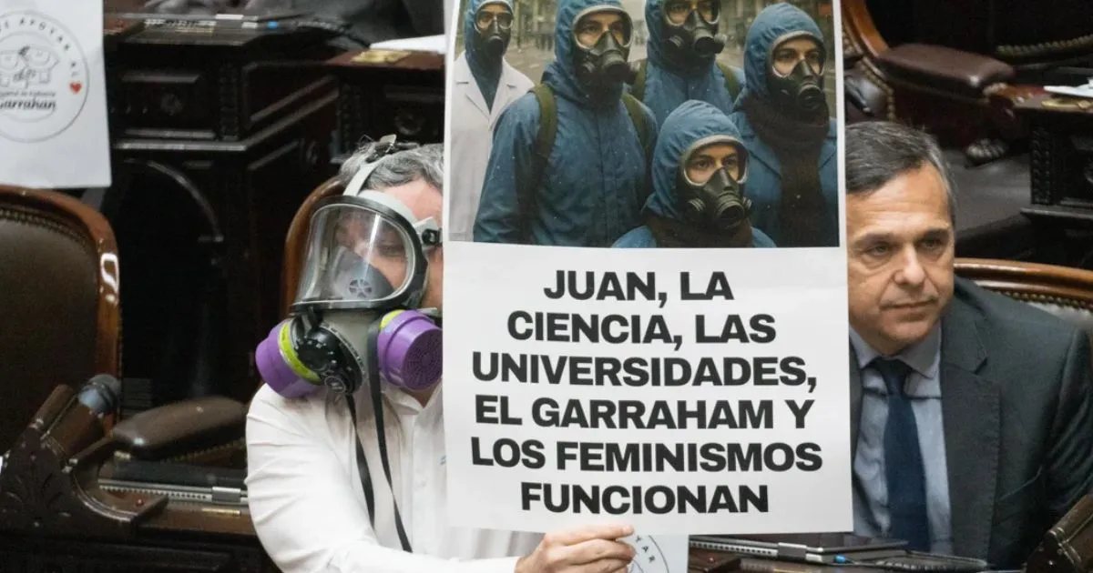 El gesto se enmarca en una jornada de lucha por parte de trabajadores del Garrahan, que reclaman mejoras salariales y laborales, y en medio de una movilización que, fuera del Congreso, reúne a científicos, organizaciones del movimiento "Ni una Menos", colectivos de jubilados y personas con discapacidad, todos afectados por los recortes del Gobierno Nacional.