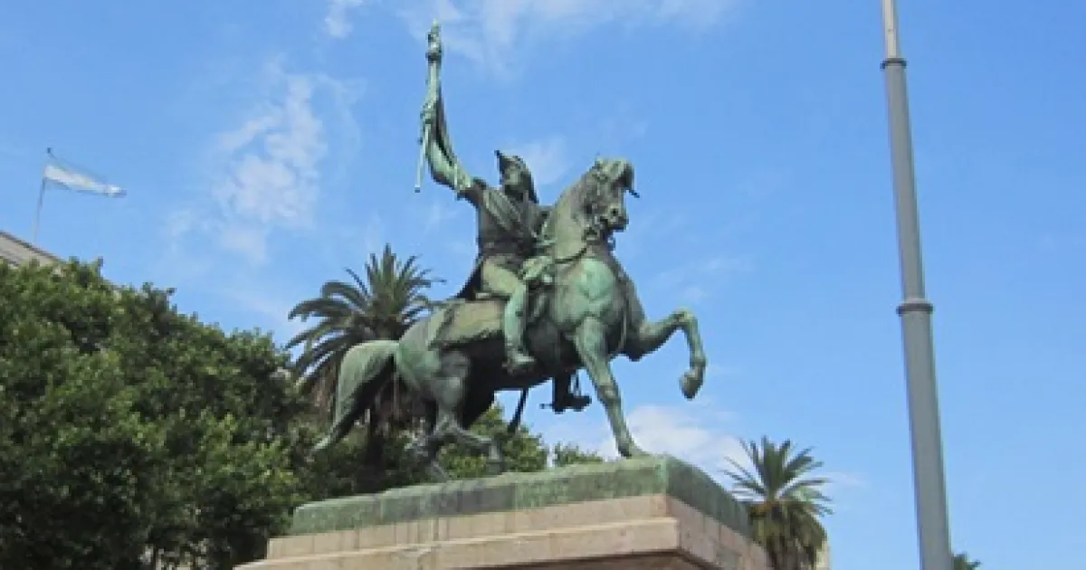 El monumento ecuestre más fotografiado del país se encuentra en la plaza de Mayo, en Buenos Aires. Muchos lo confunden con San Martín. Sin embargo, fue inaugurado por el presidente Domingo F. Sarmiento el 24 de septiembre de 1873 en homenaje a Belgrano, y el mástil que completa el conjunto tiene grabadas, en letras de bronce, las palabras del prócer al crear la bandera nacional. La curiosidad de esta estatua es que la figura del gran porteño fue realizada en bronce por el escultor francés Albert Carrier-Belleuse, autor también del mausoleo del general San Martín en la Catedral porteña; y el caballo fue esculpido por el argentino Manuel de Santa Coloma. Los artistas no se pusieron de acuerdo en la escala de ambas figuras: el general aparece vestido con demasiado boato, en una proporción que hace quedar al caballo como un potrillo enalteciendo al jinete.