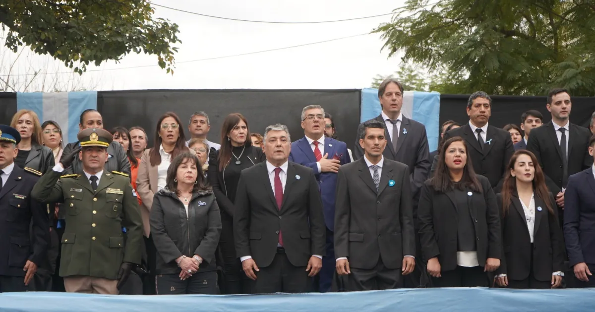 Más tarde, en la intersección de Av. Belgrano y calle Las Heras, se desarrolló el acto protocolar central, donde el intendente brindó un encendido discurso.