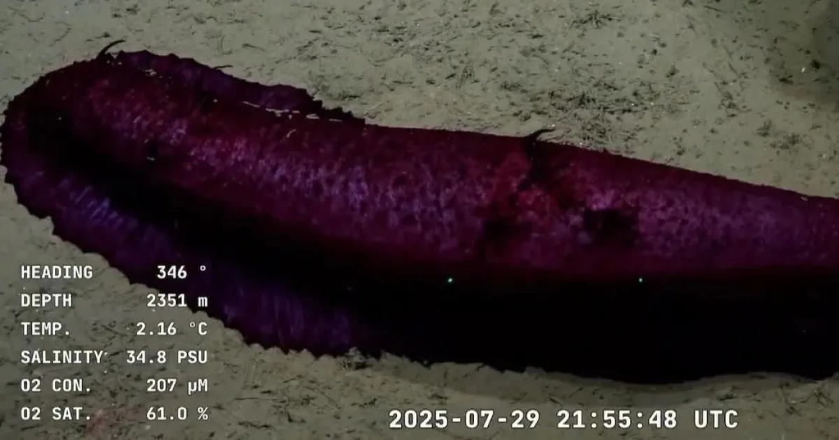 Tras el furor que causó la estrella de mar "culona" por su parecido con Patricio Estrella, otro hallazgo de la expedición del CONICET en el cañón submarino de Mar del Plata se volvió viral: un pepino de mar de color púrpura, apodado cariñosamente en las redes como "Batatita".