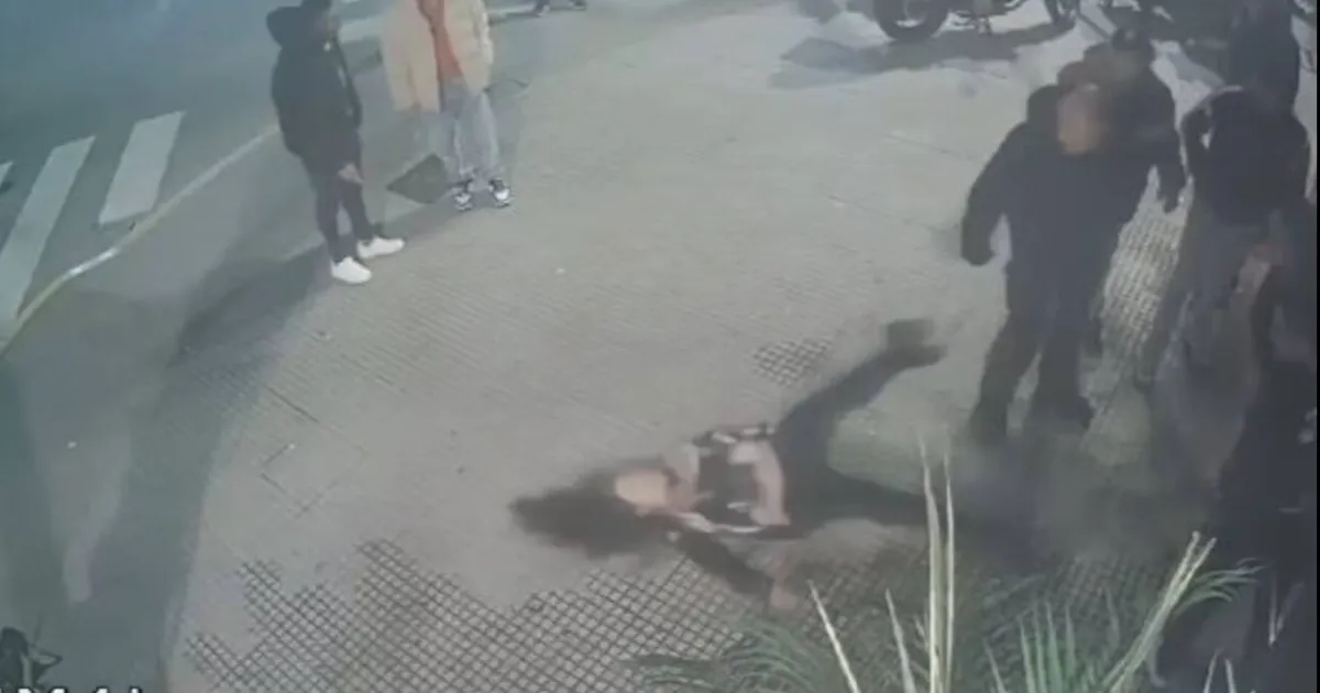 En las imágenes se observa al adolescente tirado en el piso inmovilizado por dos guardias que lo golpeaban en un estacionamiento privado, cerca de la entrada a un salón ubicada en Chacras de Coria.