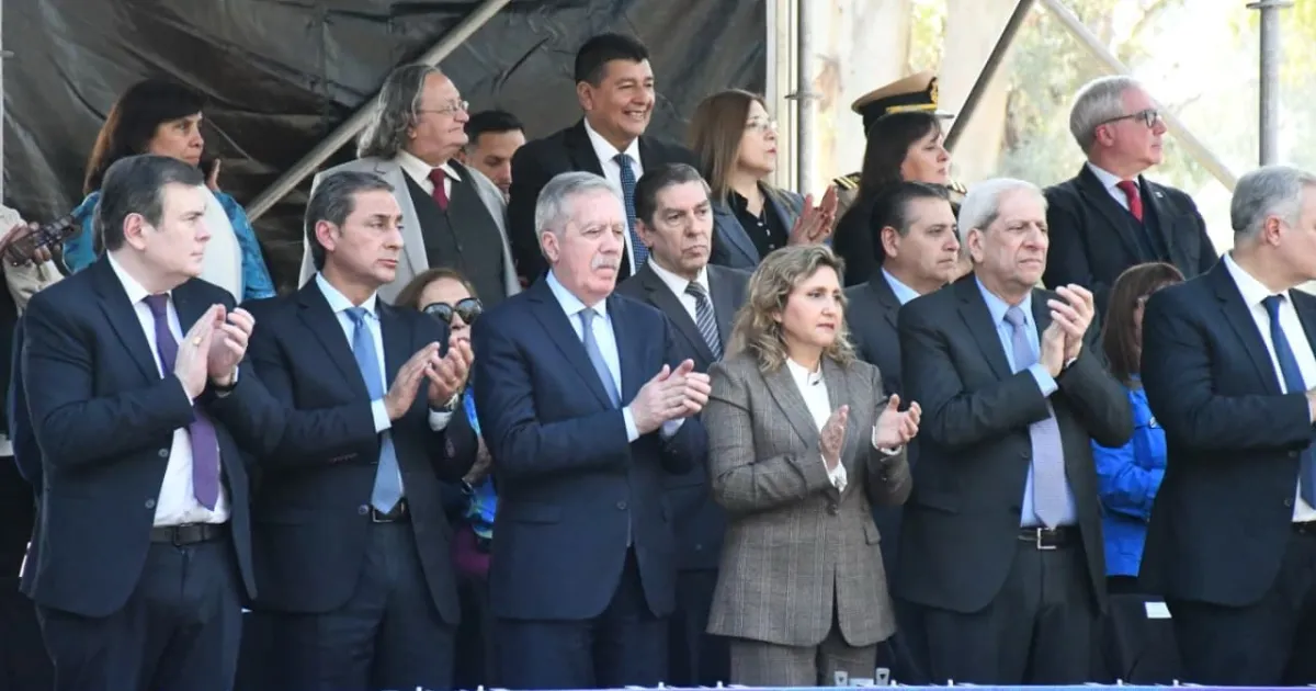 La jefa comunal presenció la ceremonia oficial y desfile de las fuerzas de seguridad desde el palco, en el que también estuvieron presentes el vicegobernador de la Provincia, Carlos Silva Neder; el jefe de Gabinete, Elías Suárez; ministros del gabinete provincial; el secretario de Seguridad, Marcelo Pato y el jefe y el subjefe de la Policía, Laureano Silva y Walter Gómez, respectivamente.
