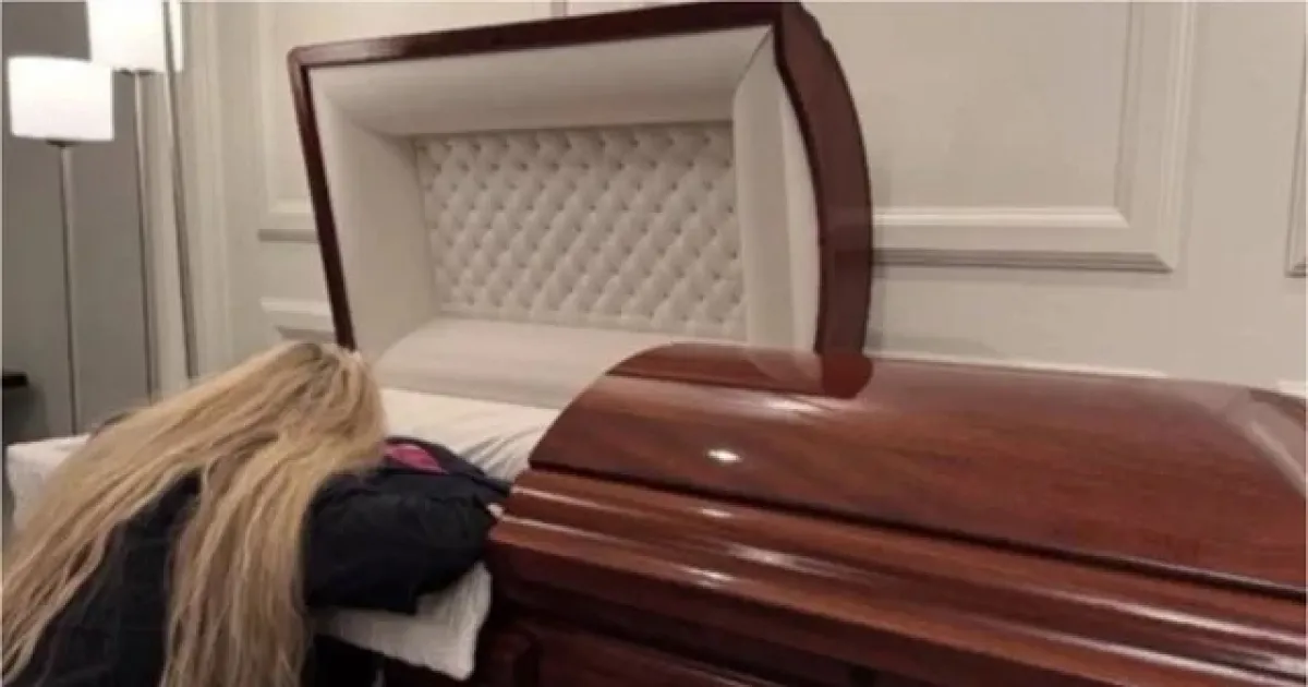 En las impactantes fotografías, se puede ver a Erika inclinada sobre el ataúd abierto de Charlie, tomando su mano y susurrándole palabras de amor
