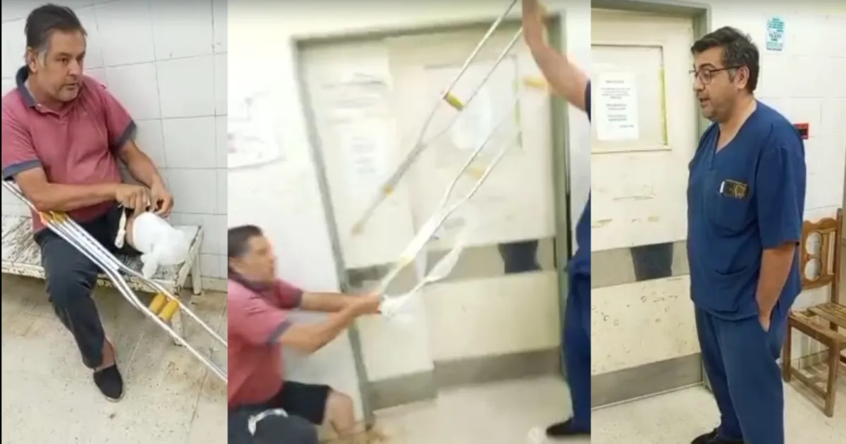 Acto seguido, ya fuera de sí, el paciente alcanza a lazarle las muletas mientras el profesional pide llamar a la policía. Allí se interrumpe el video y trascendió que que cuando el hijo del paciente le alcanzó a asestar una cachetada al médico.