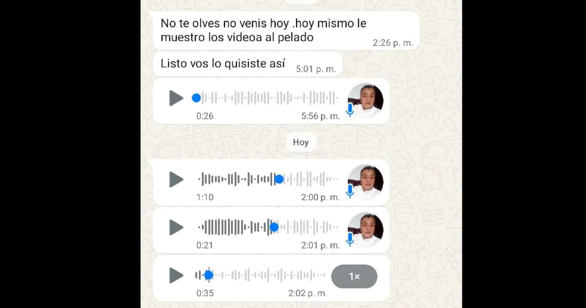Este medio accedió a tales grabaciones en donde el ahora imputado y detenido le exigía a "María" ir a su casa o de lo contrario él le mostraría las imágenes a su esposo y luego las viralizaría por las redes sociales:
