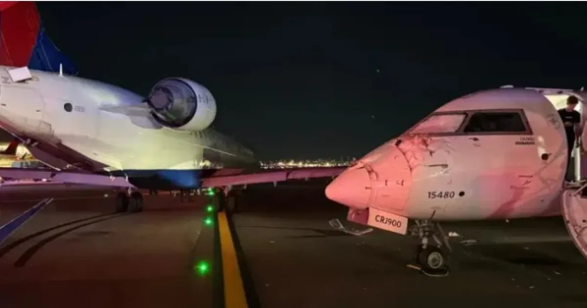 En un comunicado de Delta se indica que la colisión ocurrió cuando el ala de un avión que se preparaba para despegar con destino a Roanoke, Virginia, golpeó el fuselaje de otro avión que había llegado desde Charlotte, Carolina del Norte.