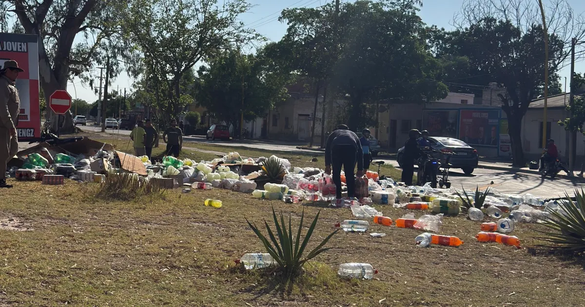 A causa del desperfecto mecánico, el rodado retrocedió varios metros sin control y terminó impactando violentamente contra un poste de alumbrado público. En la maniobra, el camión se desestabilizó y volcó su carga de bebidas, lo que provocó importantes daños materiales y una considerable pérdida económica.
