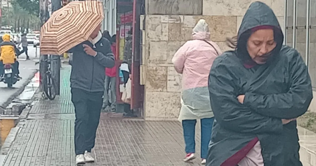 Paraguas, rompevientos y camperas volvieron a copar las calles de la ciudad capital. Para hoy, se espera una máxima de apenas 16ºC.