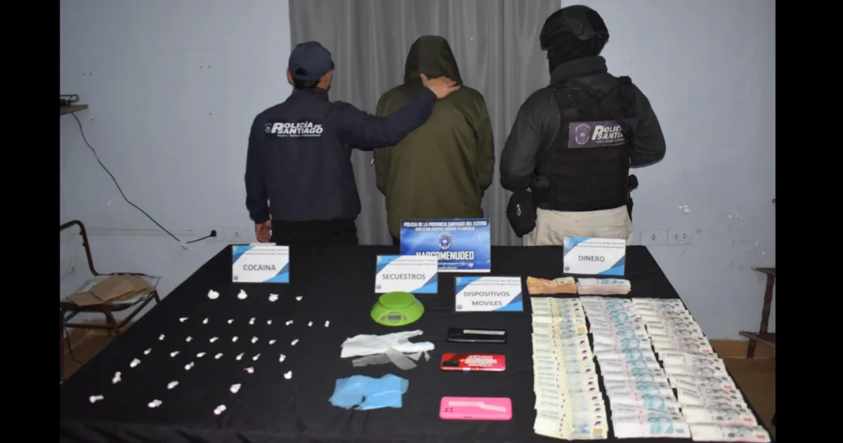 Durante el operativo, efectuado en la causa por infracción a la Ley 23.737, con intervención de la Fiscalía de Termas, se incautaron 36 envoltorios con cocaína lista para su venta, $2.040.000 en efectivo, una balanza digital, tres celulares, recortes de nylon y una motocicleta Honda Wave.