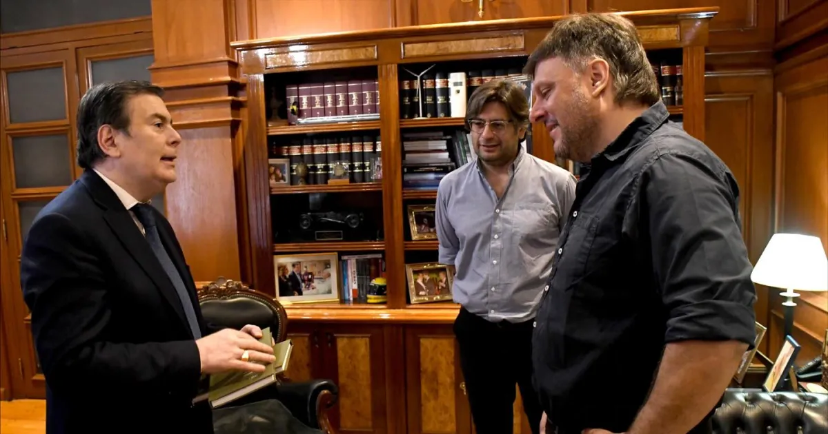 El gobernador Gerardo Zamora, acompañado por el jefe de Gabinete, Elías Suárez, recibió al diputado nacional Leandro Santoro, quien participó en un conversatorio en la ciudad de Fernández.