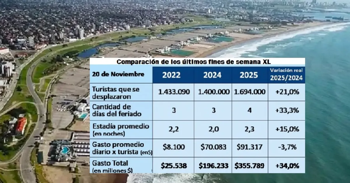 El fin de semana extralargo, otorgado por el feriado del Día de la Soberanía Nacional, trajo consigo aumentos en turistas, estadías promedio y gastos desembolsados, impulsado por el buen clima que se registró durante los cuatro días.