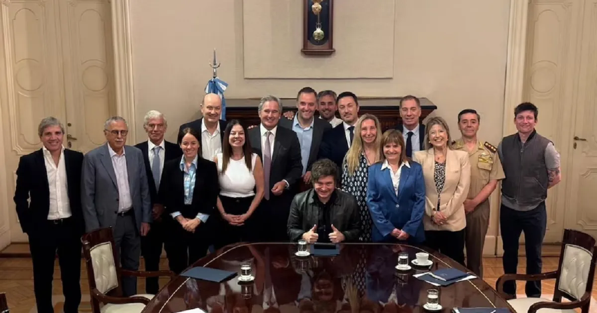 La decisión se conversó en el Salón Eva Perón, tras analizar el escenario político posterior al triunfo de La Libertad Avanza en las elecciones legislativas del 26 de octubre. Del encuentro participaron, entre otros, Federico Sturzenegger, Diego Santilli, Mario Lugones, Sandra Pettovello, Patricia Bullrich, Mariano Cúneo Libarona, Pablo Quirno, Luis Petri y Luis Caputo, además de Karina Milei, Santiago Caputo y Martín Menem.