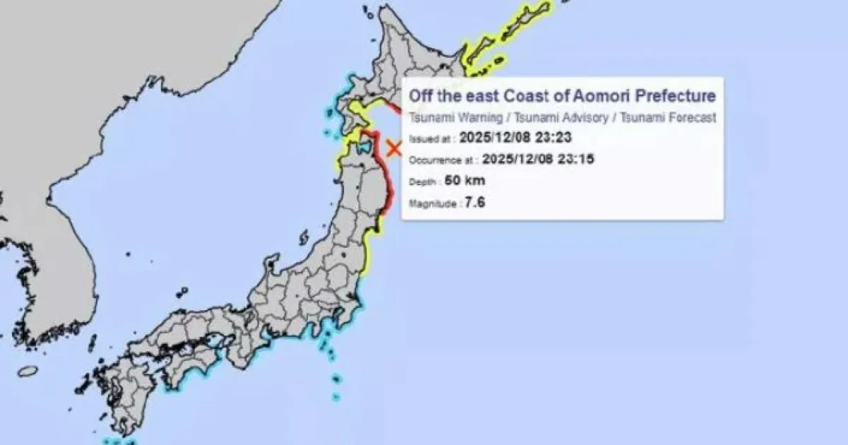 La Agencia Meteorológica de Japón (JMA) emitió el alerta de tsunami para las zonas costeras de las prefecturas de Aomori, Hokkaido e Iwate, con olas de hasta tres metros.