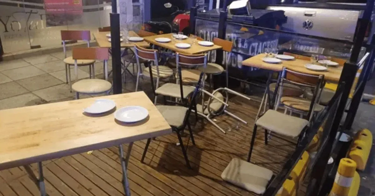 Varias sillas volaron por el aire y la vajilla terminó estallada contra el suelo. Los ruidos de los platos rotos y los gritos alertaron a quienes caminaban por la zona, mientras los responsables del local intentaban resguardar la integridad de los clientes. Durante la pelea también resultaron dañados los vidrios del deck del local.