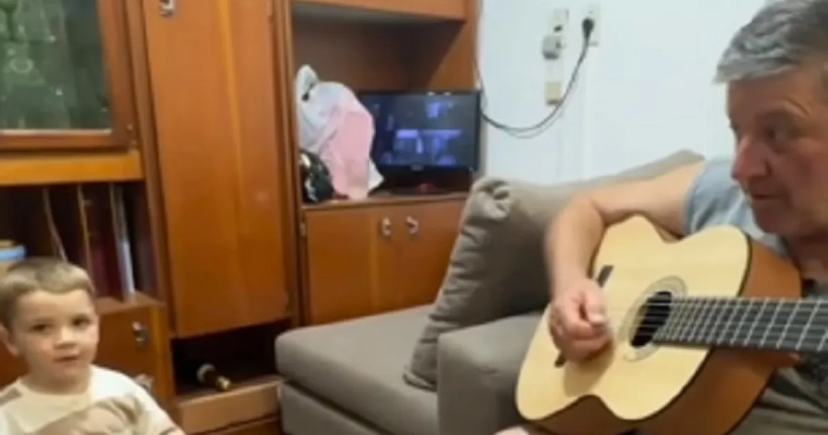 Hay imágenes que no necesitan palabras para emocionar. Un abuelo, guitarra en mano, y su nieto de apenas dos años, sentado frente a un bombo, comparten un instante único al interpretar un malambo que parece unir generaciones.