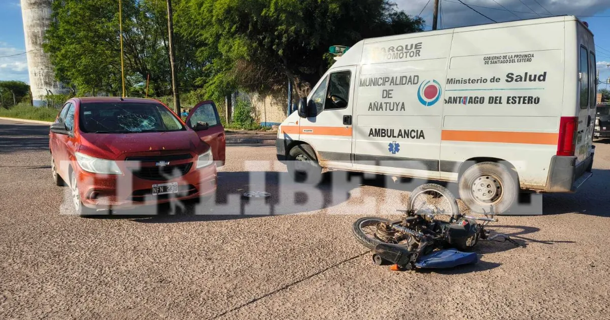 Choque entre una moto y un auto dejó un joven herido en Añatuya