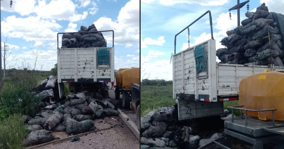 El rodado transportaba carbón vegetal con procedencia de la ciudad de Monte Quemado, departamento Copo, y destino final en Buenos Aires, cuando por causas que se investigan comenzó a producirse el foco ígneo en la carga.