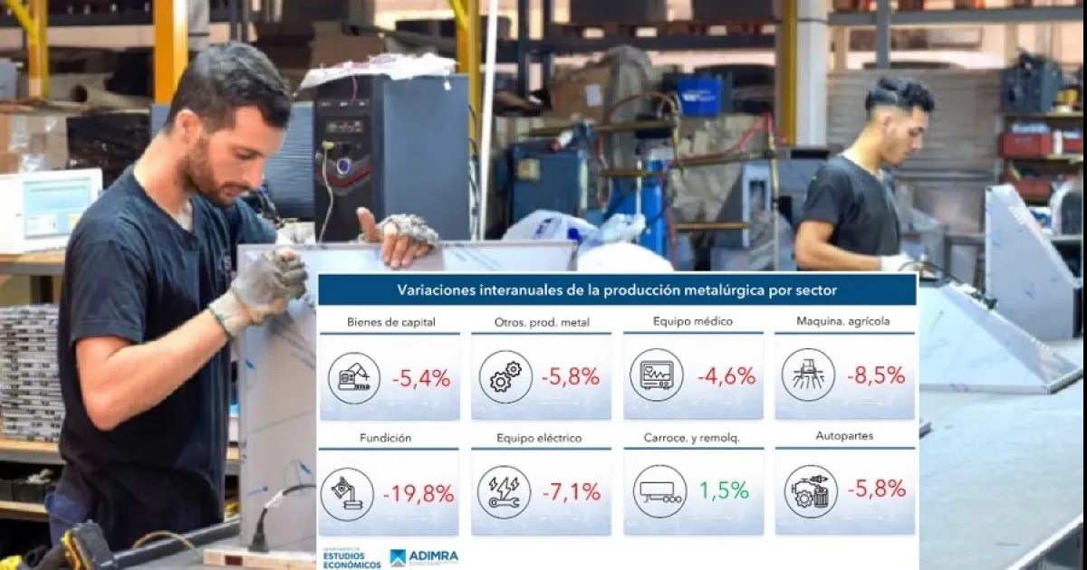 "El cierre de 2025 muestra un retroceso incluso frente a un año ya muy regresivo como fue 2024", indicó el presidente de Adimra. También advirtió que "el nivel de importaciones crece a un ritmo superior al 70% interanual y golpea de lleno a la producción nacional", y señaló que el consumo en retroceso configura un "escenario preocupante para el sector y para el empleo industrial". Según Adimra, las importaciones de productos metalúrgicos en noviembre crecieron 18,9% interanual y las exportaciones cayeron 10,4%.