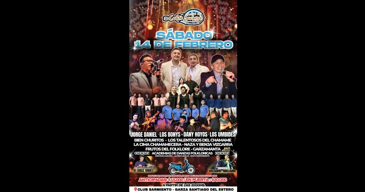 El Festival del Canto Sachero volverá a encender la noche de Garza el sábado 14 de febrero de 2026, desde las 20, en el Club Sarmiento. En el marco del fin de semana turístico por carnaval, la localidad se alista para una nueva edición de una fiesta que ya es parte de la identidad cultural santiagueña.