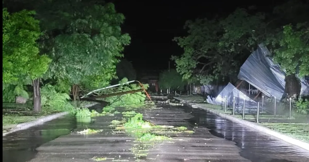 El fenómeno estuvo acompañado por fuertes ráfagas de viento, intensa actividad eléctrica y precipitaciones, que provocaron importantes daños materiales.