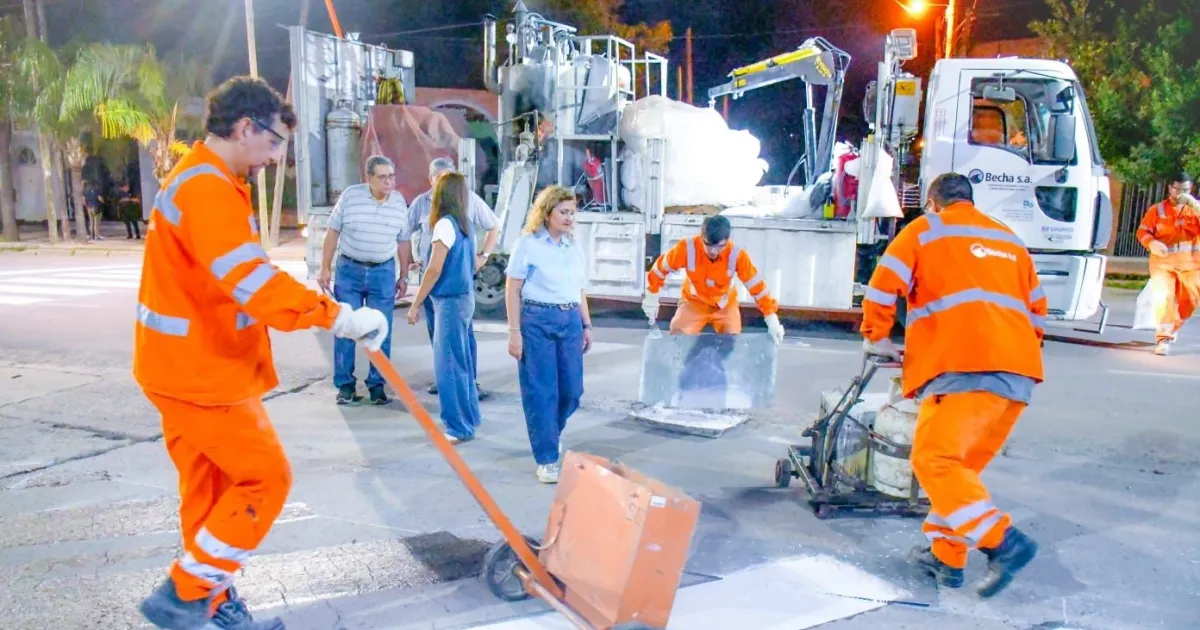 La intendente, Ing. Norma Fuentes, supervisó la noche del lunes los trabajos de demarcación de sendas peatonales y líneas de frenado, que comprenden más de 200 esquinas de la ciudad.