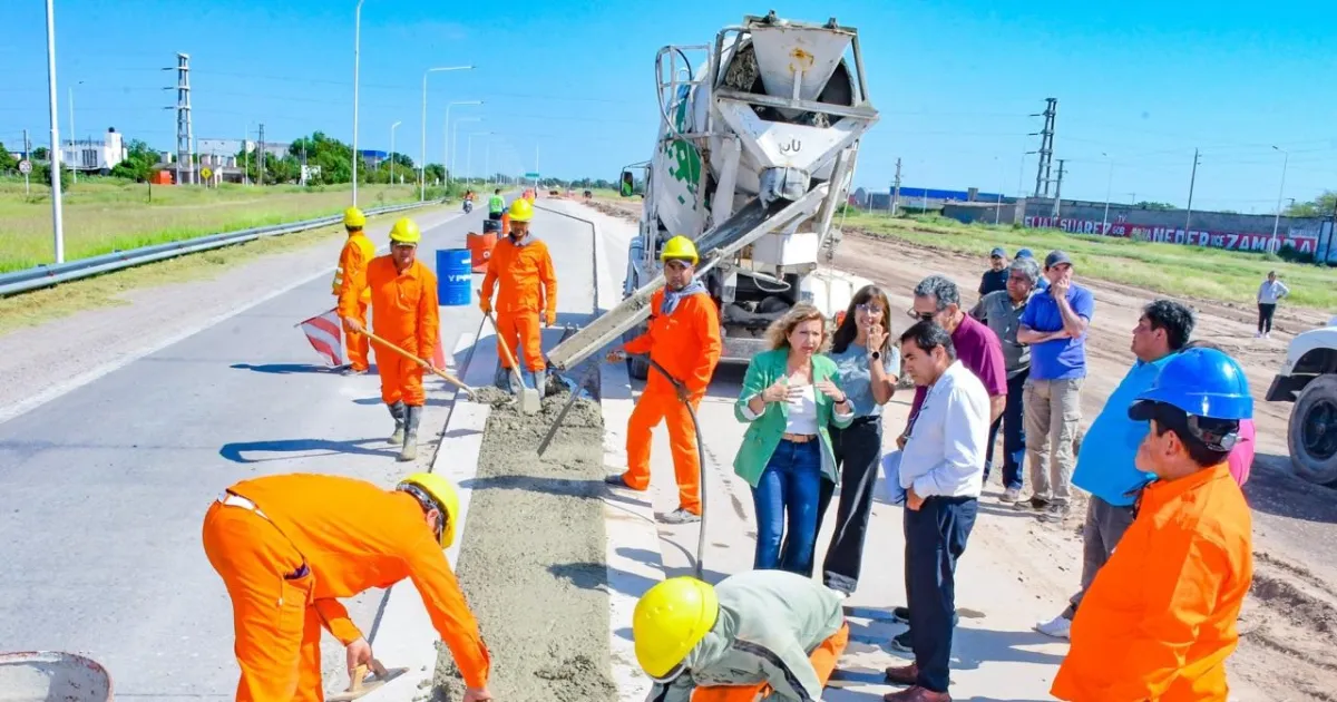 La intendente, Ing. Norma Fuentes, supervisó los trabajos de mejoras en el acceso albarrio Villa del Carmen por la avenida de Circunvalación Raúl Alfonsín, con el objetivode ordenar el tránsito de vehículos en ese sector.