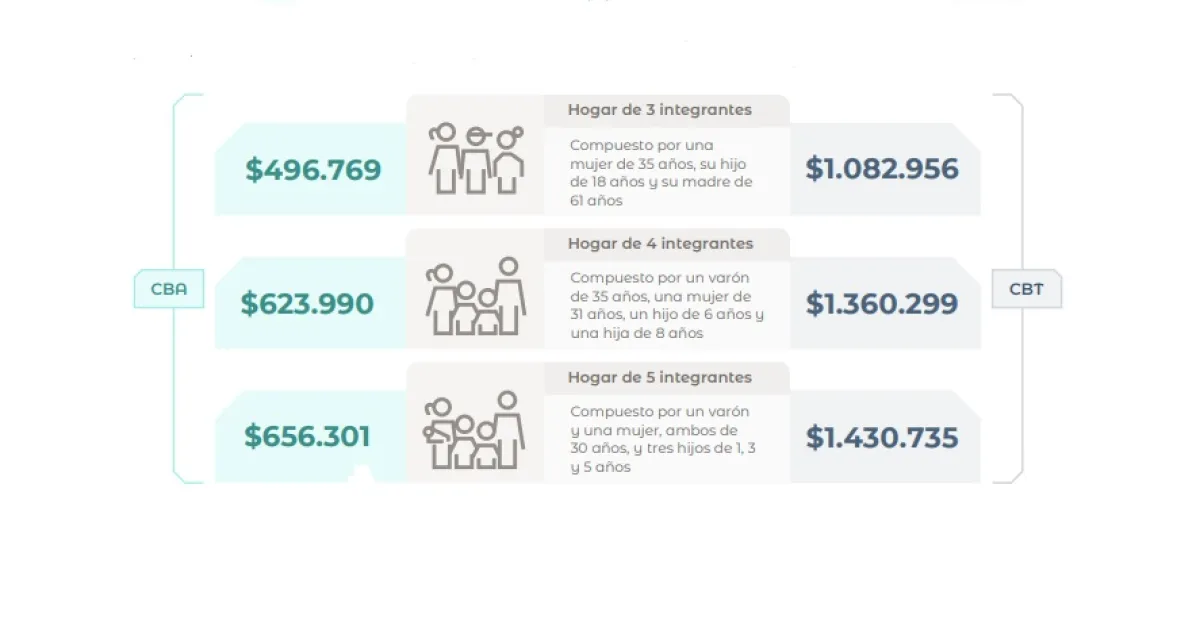 Un adulto necesitó al menos $201.939 para no ser considerado indigente, mientras una familia tipo compuesta por dos mayores y dos niños tuvo que conseguir $623.990 para no quedar bajo esa línea.