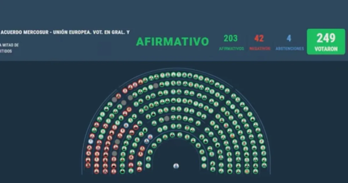 Se aprobó con 203 votos a favor, 42 en contra y 4 abstenciones. El entendimiento comercial ahora deberá ser tratado por la Cámara Alta.