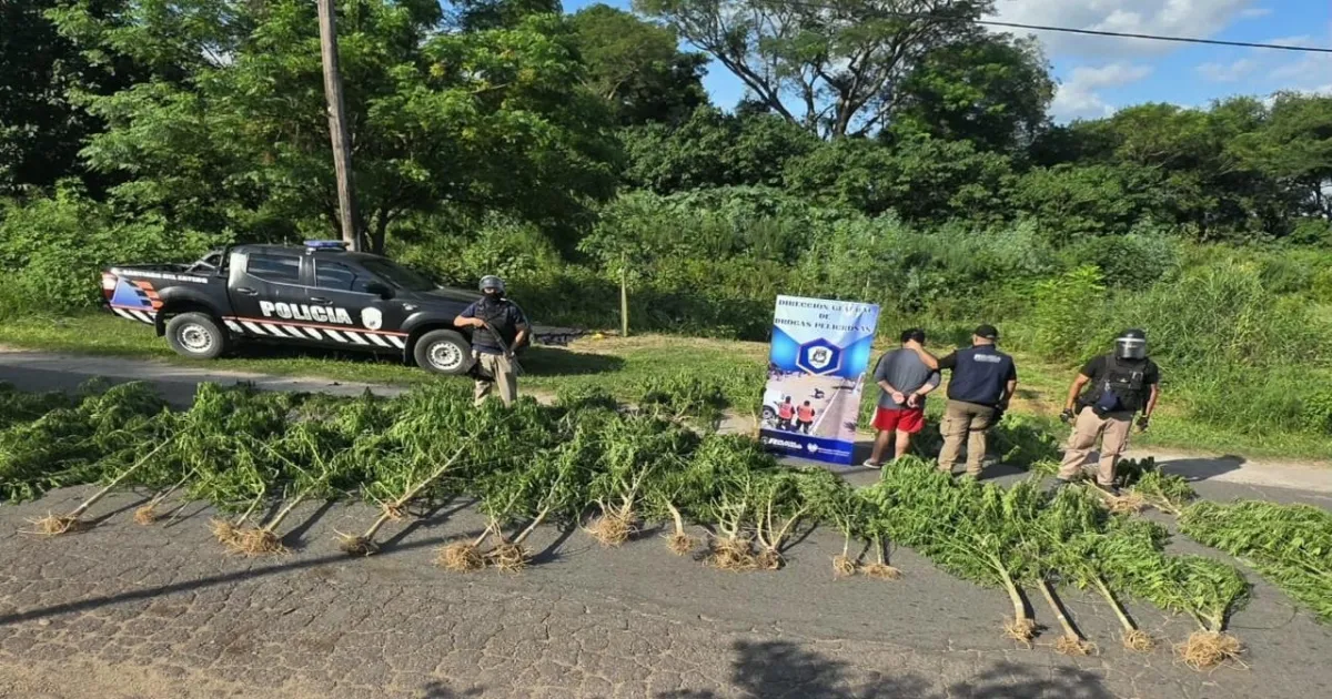 Coordinados por la fiscal, Pilar Gallo, trascendió que durante el operativo los efectivos secuestraron 63 plantas con características compatibles con Cannabis sativa, cuyas alturas oscilaban entre los 57 centímetros y los 4,50 metros. Las pruebas de orientación realizadas en el lugar arrojaron resultado positivo para marihuana.