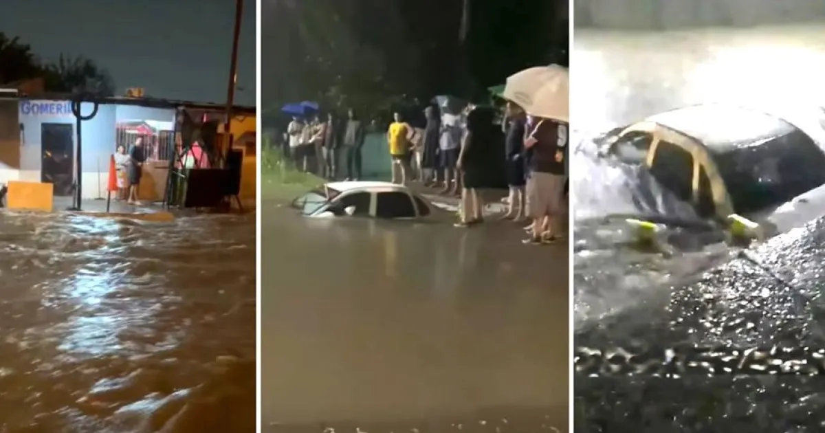 Calles convertidas en verdaderos ríos y vehículos avanzando con el agua a la altura e incluso por encima de las ruedas reflejaron la magnitud de las precipitaciones caídas en pocas horas.