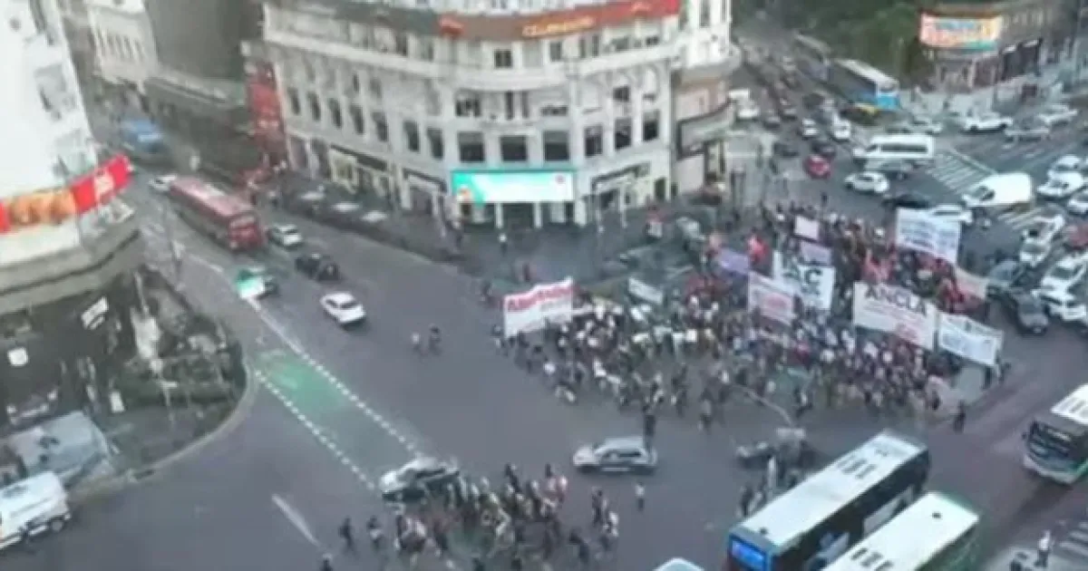 Manifestantes de diferentes agrupaciones cortaron este viernes las avenidas 9 de Julio y Corrientes a la altura del Obelisco y la situación generó tensión y caos en la zona.