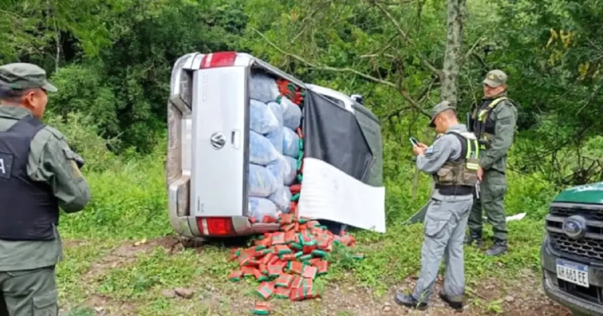 Tras el siniestro, los efectivos lograron aprehender a los dos ocupantes de la camioneta, ambos hombres mayores de edad. Al inspeccionar el rodado, detectaron numerosos bultos ubicados tanto en el asiento trasero como en la caja del vehículo.