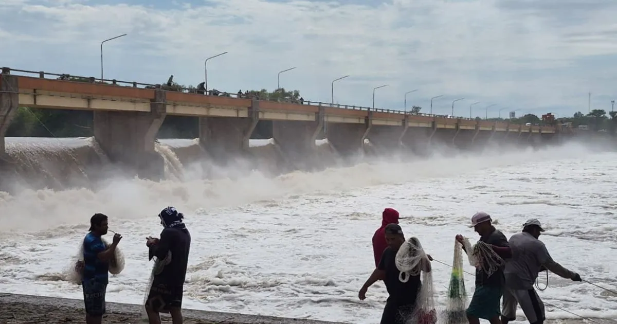 Crecida del río Dulce: el dique Los Quiroga ofrece una postal impactante con decenas de pescadores