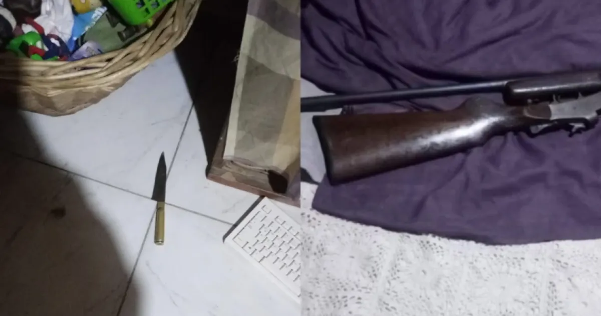 Durante el procedimiento, la Policía secuestró un cuchillo tipo facón que habría sido utilizado en el ataque, además de una escopeta rebatible cargada que se encontraba en una de las habitaciones.