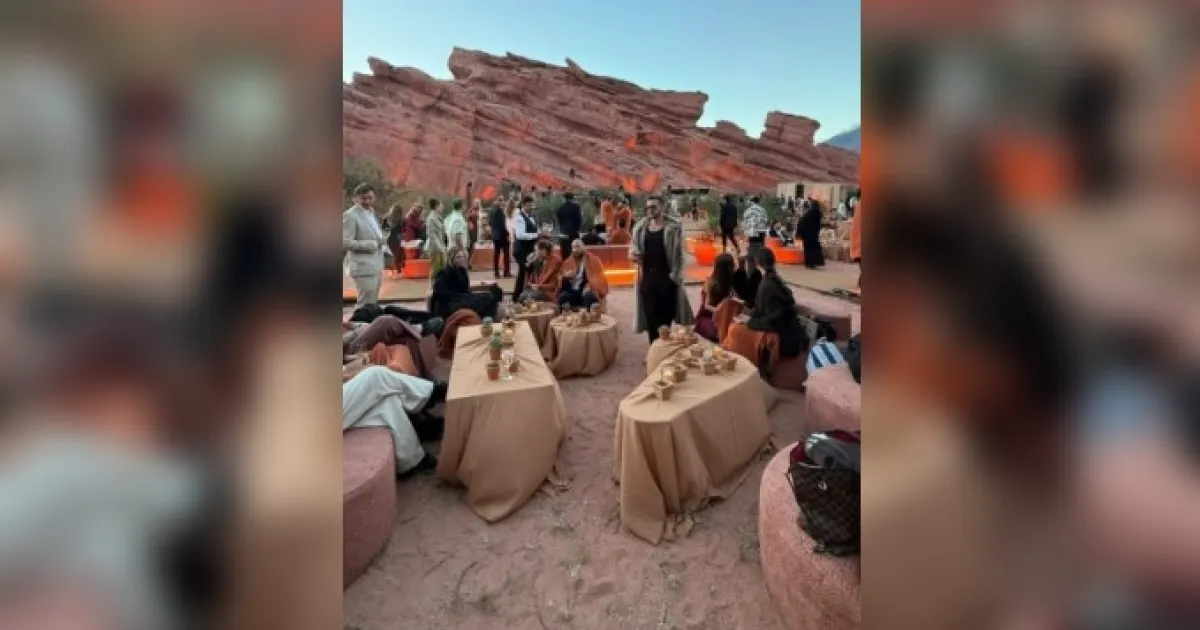 Las imágenes viralizadas en redes sociales reflejan la magnitud de la producción: estructuras montadas en medio del paisaje, un DJ set de alta potencia, efectos visuales y luces LED rojas proyectadas directamente sobre las formaciones rocosas, un entorno de alto valor geológico y ambiental.
