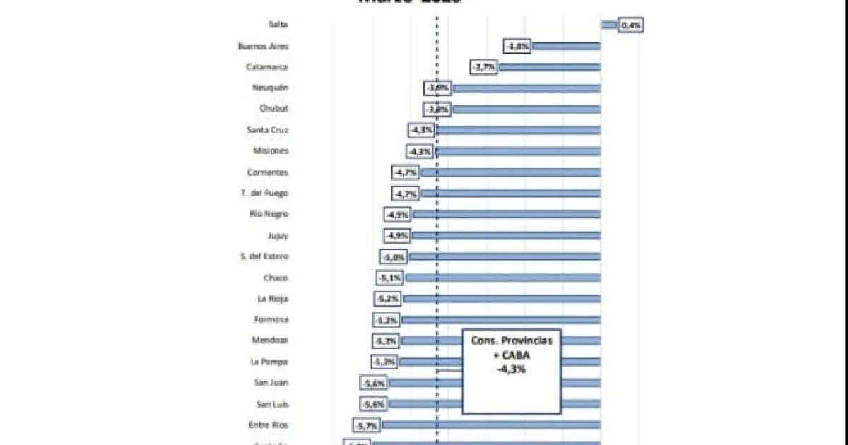 En este sentido, un informe del economista Nadin Argañaraz, del Instituto Argentino de Análisis Fiscal (Iaraf) señala que "en el mes de marzo de 2026 el gobierno Nacional envió al consolidado de provincias más CABA $5.050.000 millones en concepto de coparticipación, leyes especiales y compensaciones, frente a $3.995.000 millones enviados durante igual período del año anterior. Es decir que se observó una variación nominal del 26,4%. Descontando el proceso inflacionario del período, esto se traduciría en una baja real del 4,3%1".