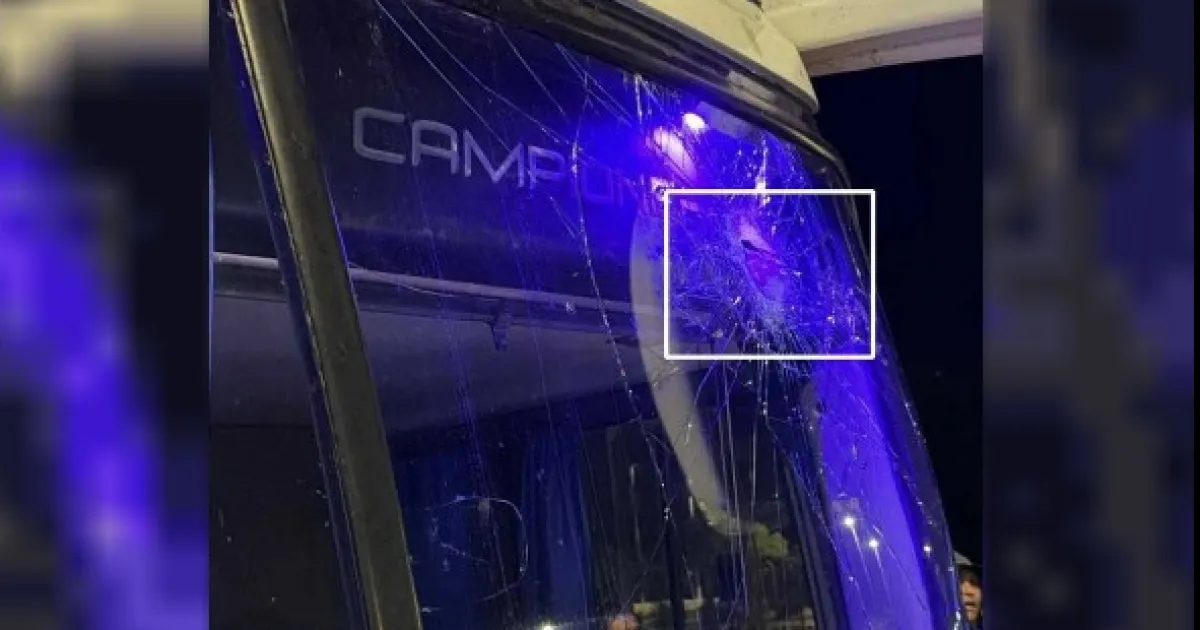 En las imágenes que se filtraron luego de este nuevo hecho de violencia que involucra a un equipo chileno, se pueden observar varios vidrios del micro rotos e incluso piedras clavadas en el frente del mismo.