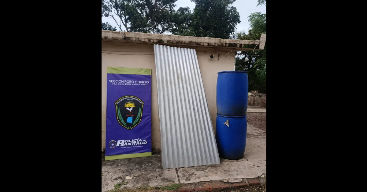 Según fuentes policiales, los bienes denunciados consistían en cuatro chapas y dos bidones de plástico de color azul con capacidad de 200 litros cada uno.