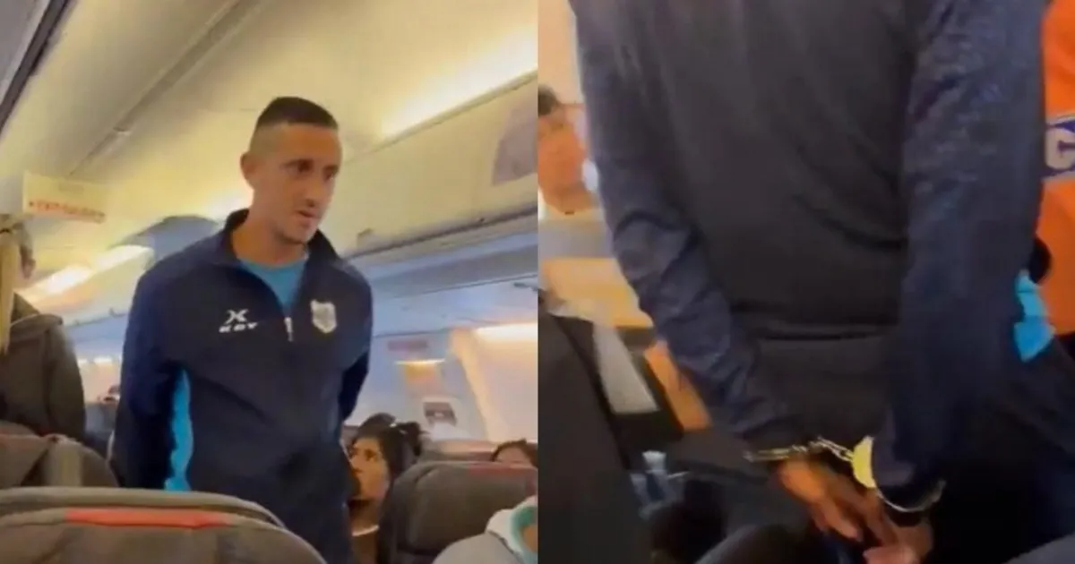 El episodio se viralizó rápidamente luego de que el periodista Diego Poggi difundiera imágenes en las que se observa al jugador descendiendo de la aeronave esposado y custodiado por personal de seguridad.