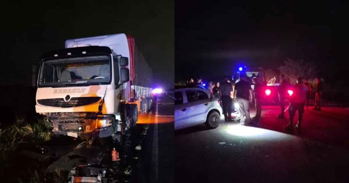 Fallecieron conductor y acompañante. Heridos, tres jóvenes que viajaban en el sector trasero. El auto chocó con un camión.