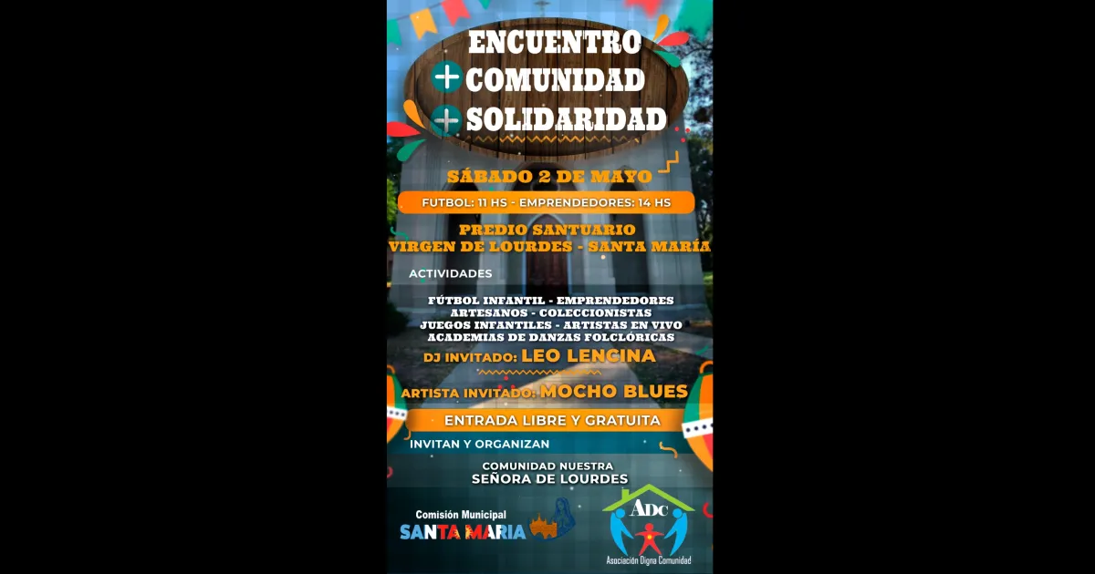 La localidad de Santa María vivirá una jornada especial el próximo sábado 2 de mayo con la realización del "Encuentro Comunidad + Solidaridad", un evento abierto y gratuito que combinará deporte, cultura y participación social.