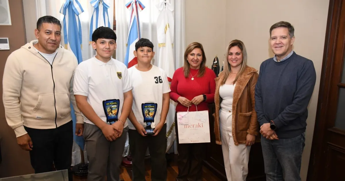 Los hermanos Valentino y Benjamín Luna, ganadores en el Campeonato Argentino, fueron recibidos por la intendente, quien destacó su talento y el crecimiento de la disciplina en la provincia.