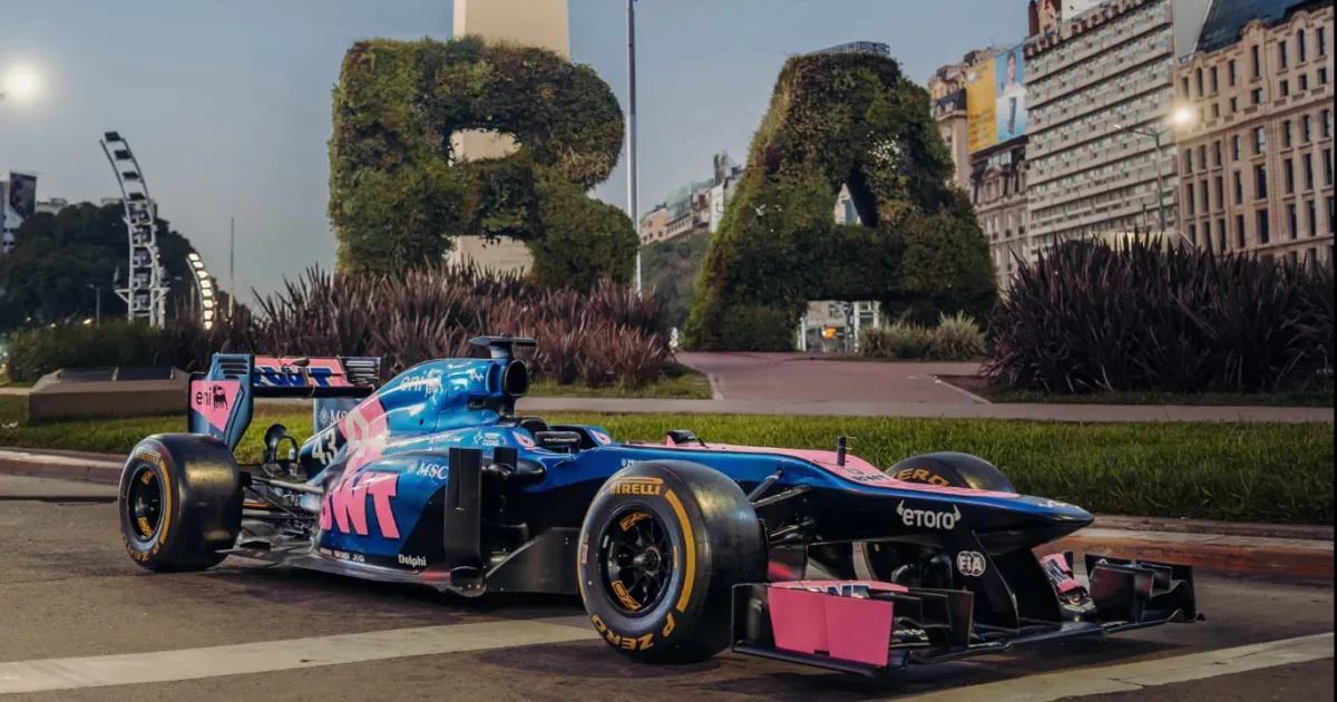 El auto de Colapinto para la exhibición de F1 ya fue presentado en el Obelisco