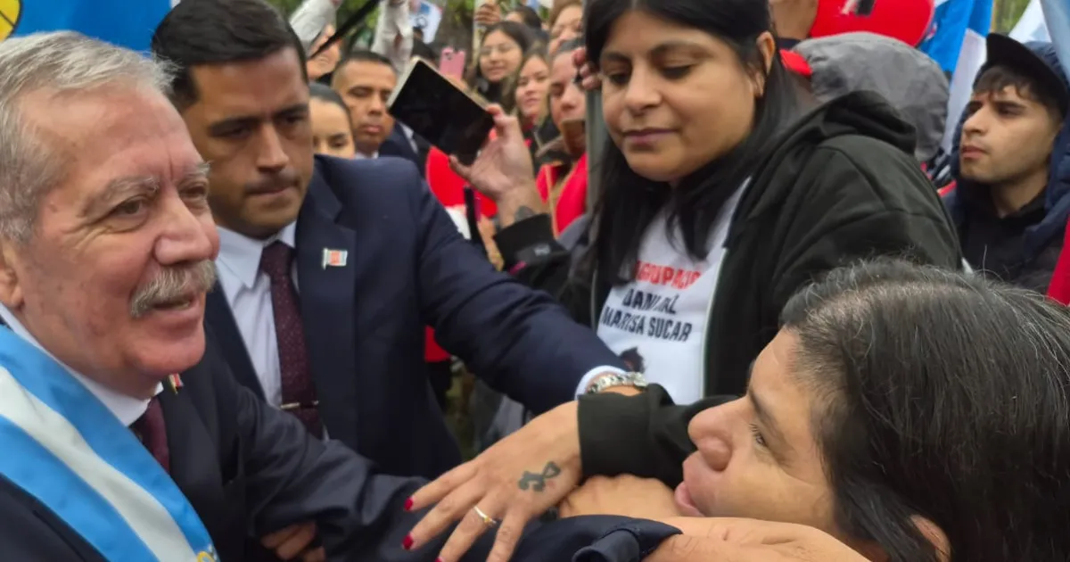 El gobernador Elías Suárez se acercó a los santiagueños que lo esperaban afuera de la Legislatura y recibió muestras de apoyo tras los anuncios.