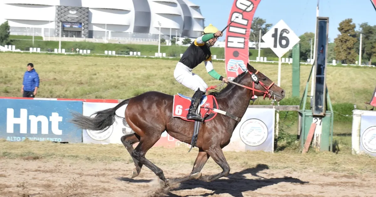 El ejemplar de Tucumán le sacó cinco cuerpos a su escolta Stravos Dream para dominar una carrera de 1.700 metros en el Clásico de la nueva reunión. El jockey que guio al caballo triunfador fue Rubén Oscar Camos. HIPODROMO 27 DE ABRIL